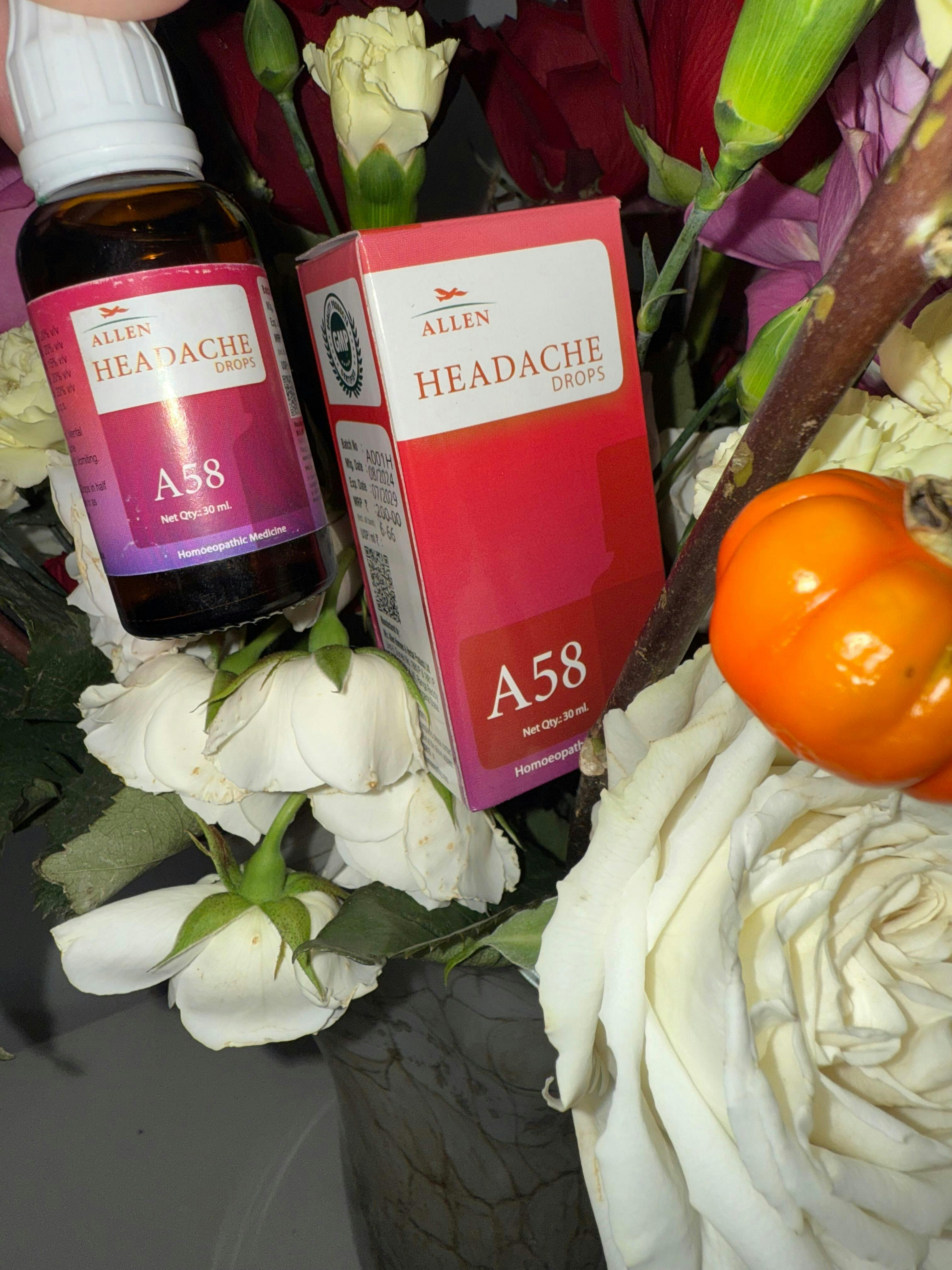 - Allen A58 Headache Drops are effective for treating headache, migraine, mental stress, indigestion, nervousness, headache associated with nausea and vomiting.