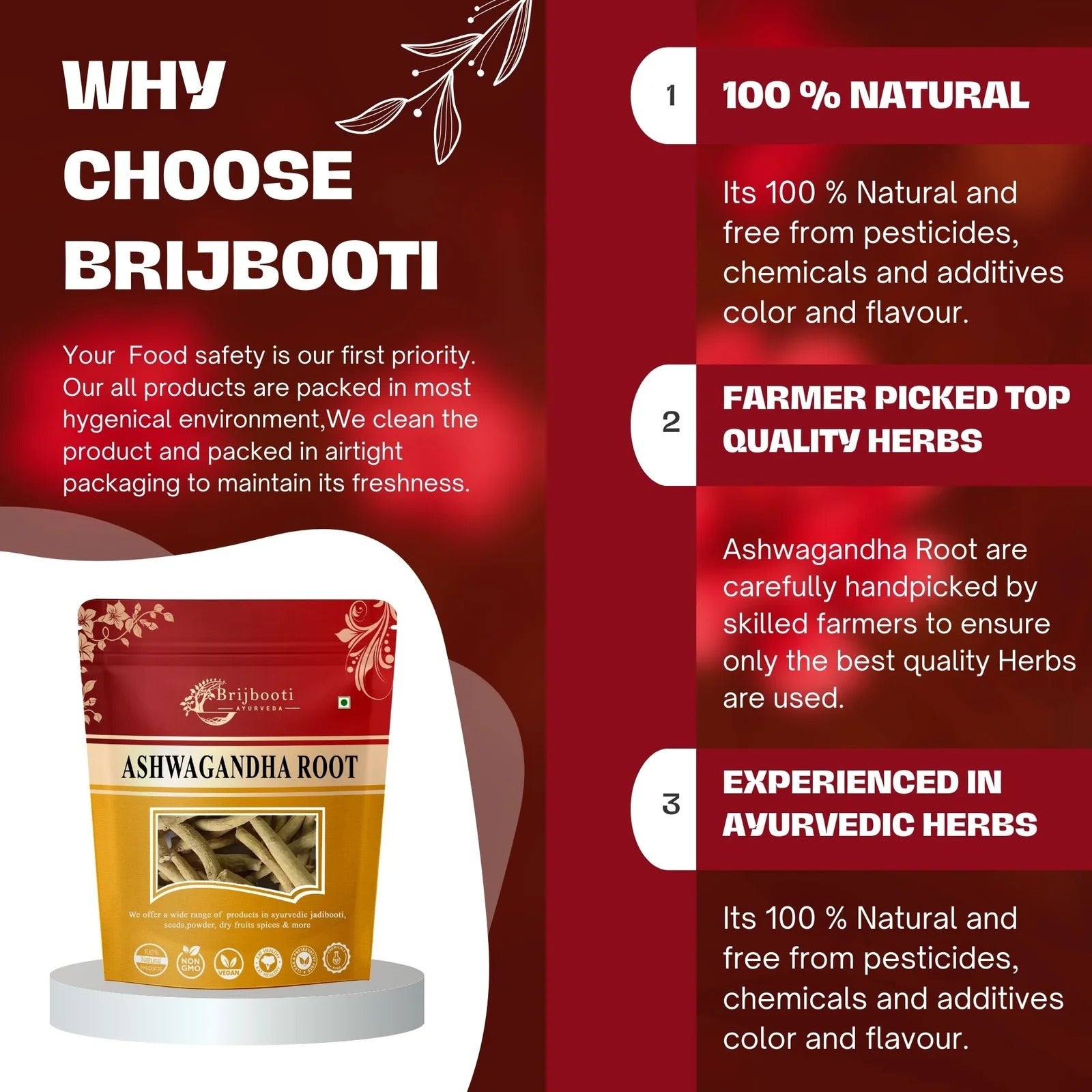 Brijbooti Birju Mahavir Ashwagandha Withania Somnifera Root - 200 gms - Organic Wellnesses