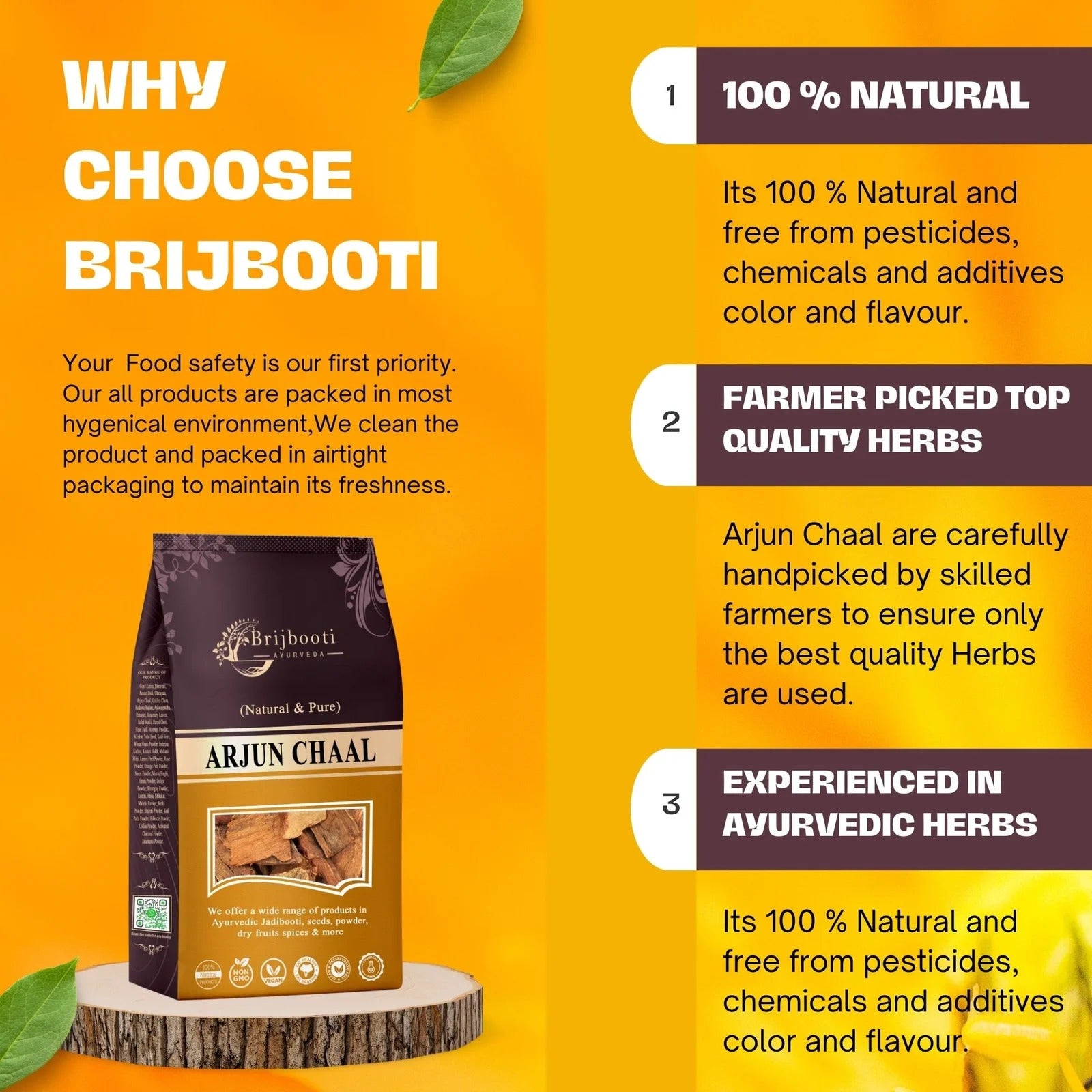 - Our Arjun Chaal is sourced from farms directly and it's 100 % Natural and free from pesticides, chemicals, and additives.