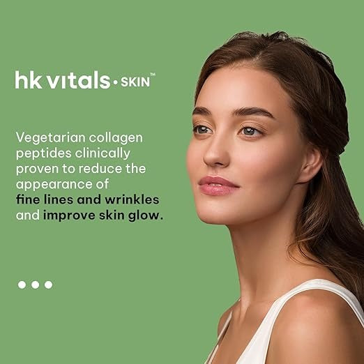 - For young and glowing skin: the initial signs of skin ageing are often the result of deeper changes - primarily your skin’s inability to renew itself due to the natural loss of collagen. Hk vitals skin radiance collagen veg contains vegetarian collagen peptides which is clinically-proven to reduce fine lines and wrinkles in 8 weeks. It also has antioxidants like vitamin c & e that help boost skin glow and radiance