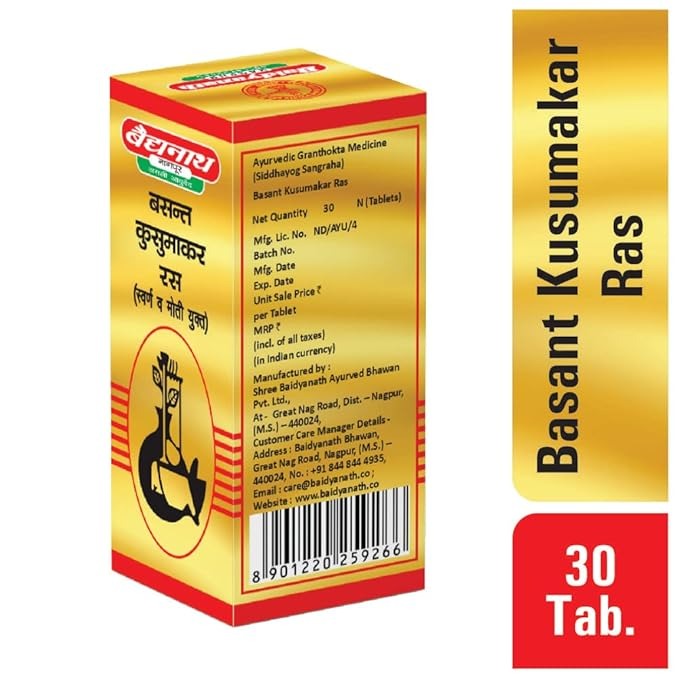 Baidyanath Basant Kusumakar Ras is an herbal formulation. It is known to contain gold. The other ingredients in this supplement are