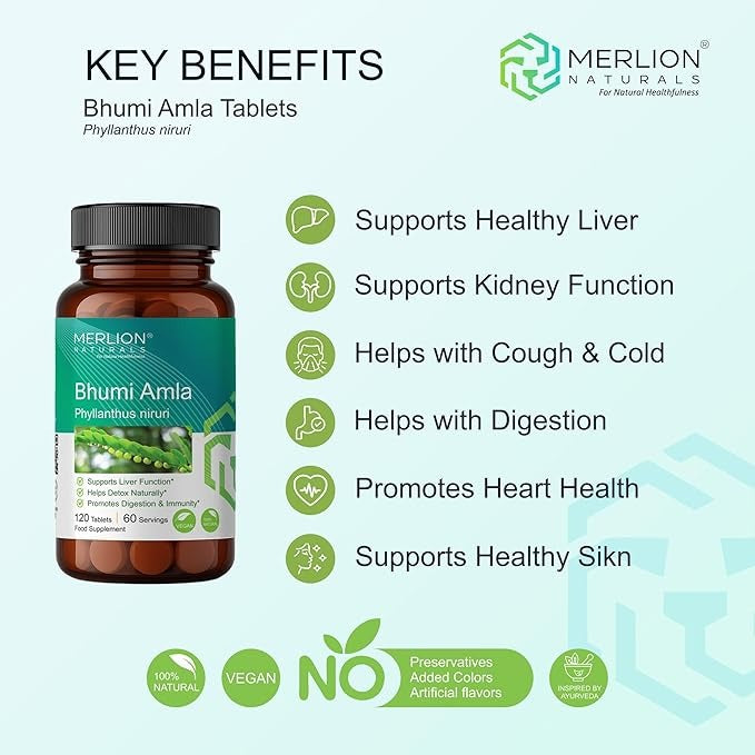 - Merlion Naturals Bhumi Amla Tablet is a natural herbal supplement and contains the goodness of high quality Bhumi Amla ( Phyllanthus niruri ) in form of tablets. Bhumi Amla is an important liver supporting Ayurvedic her and an ingredient of Chyawanprash.