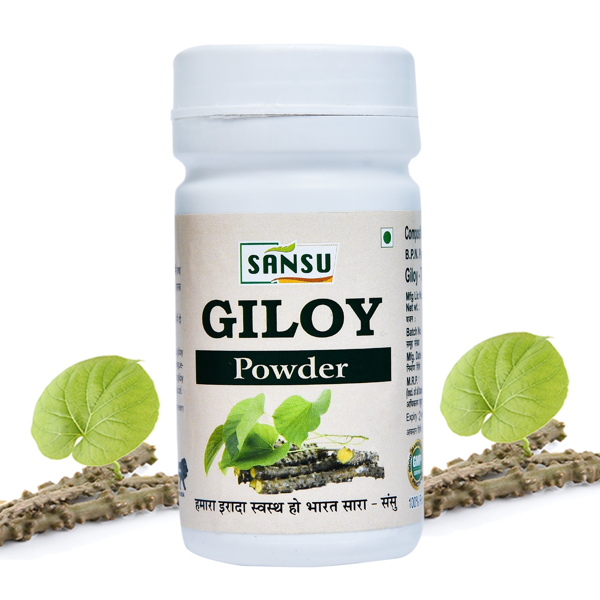 - Sansu Giloy Powder is a finely milled herbal powder made from the traditional Ayurvedic plant Giloy, valued for its long-standing use in wellness practices.