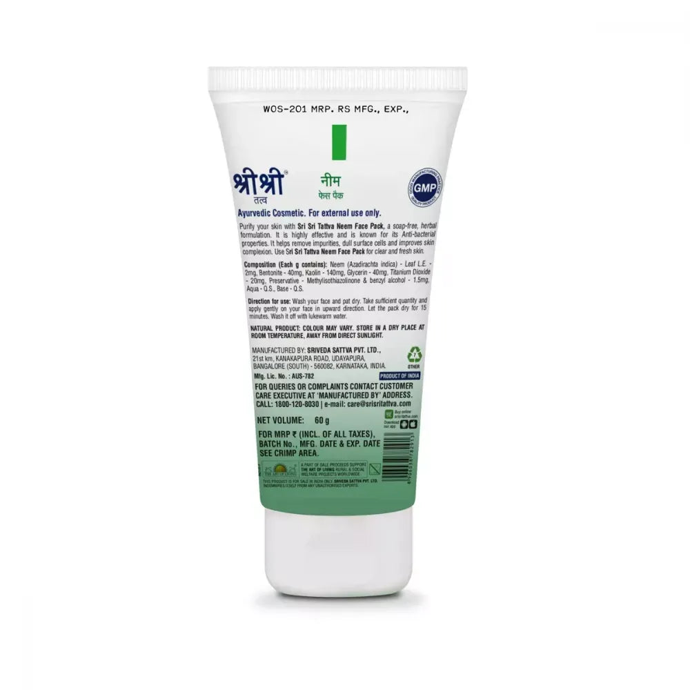 - Sri Sri Tattva Neem Face Pack is a soap-free, herbal product highly effective and is known for its antibacterial properties. It helps remove impurities, dull surface cells and improves skin complexion. It is used for clear and fresh skin.
