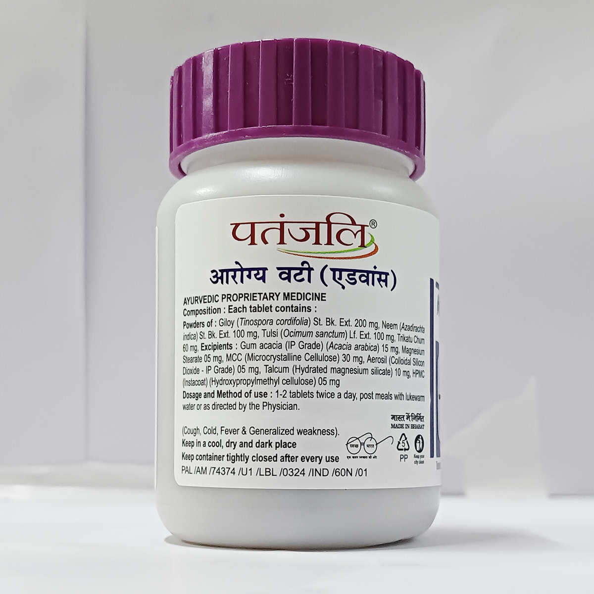 Patanjali arogya vati improves health. It has natural anti biotic and anti-viral properties that support the skin. It may help strengthen the immune system. This is a special combination of all three .