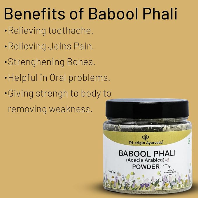 - 100% organic babool phali powder (also known as kikar powder) for joint pain relief.