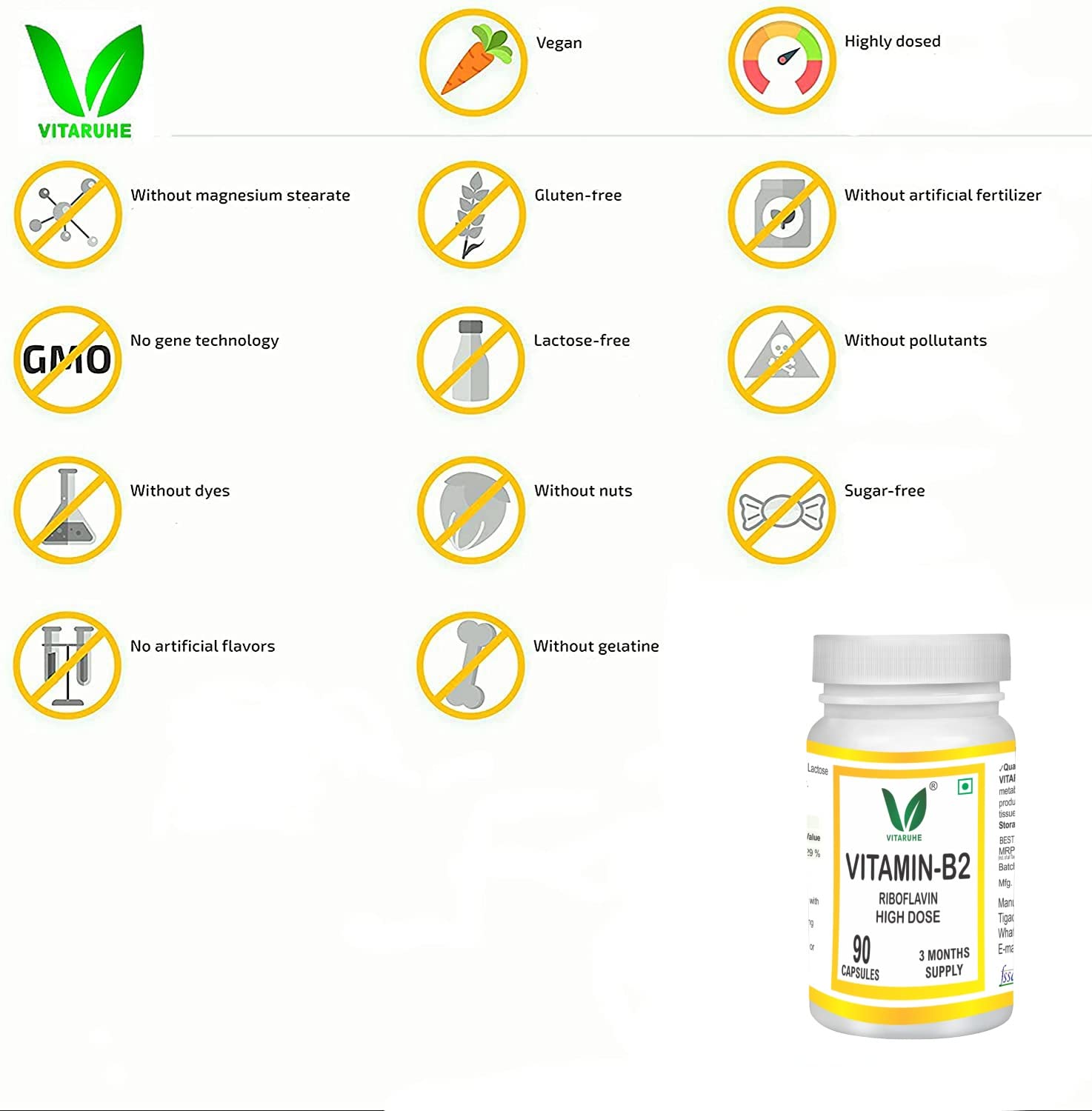Vitaruhe Vitamin B2 (Riboflavin) High Dose - 90 Capsules